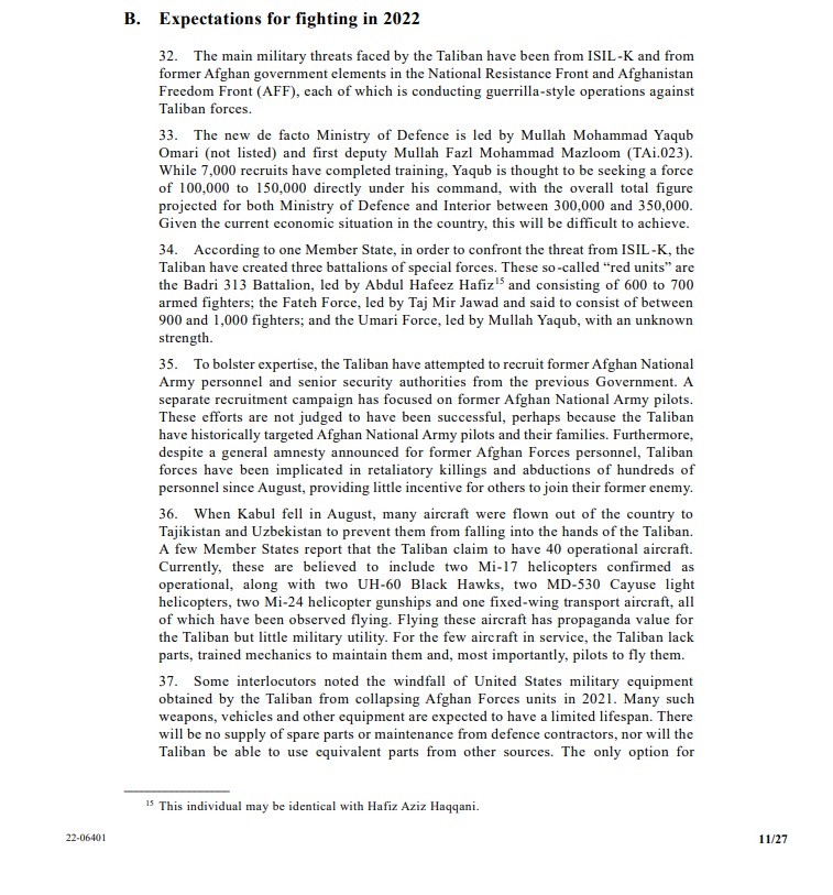 "...in order to confront the threat from ISIL-K, the Taliban have created three battalions of special forces. These so-called “red units” are the Badri 313 Battalion, led by Abdul Hafeez Hafiz 15 and consisting of 600 to 700 armed fighters..."