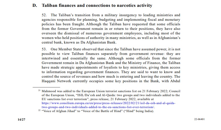 "One Member State observed that since the Taliban have assumed power, it is not possible to view Taliban finances separately from government revenue: they are intertwined and essentially the same."