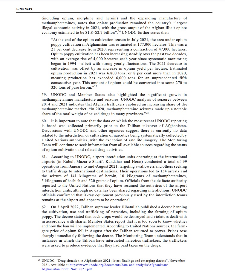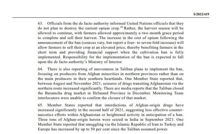 "There is also reporting of unevenness in Taliban plans to implement the ban, focusing on producers from Afghan minorities in northern provinces rather than on the main producers in their southern heartlands."
