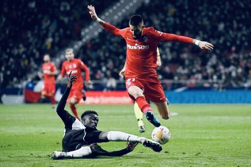 Both teams had the same off-the-ball structures (5-4-1), but with different articulations. Concerning Atletico, Felix cover shadowed Guillamon to prevent drops off, and Suarez jumped out on the left lane. The 5-4-1 is central, leaving fullbacks with numerical inferiority.