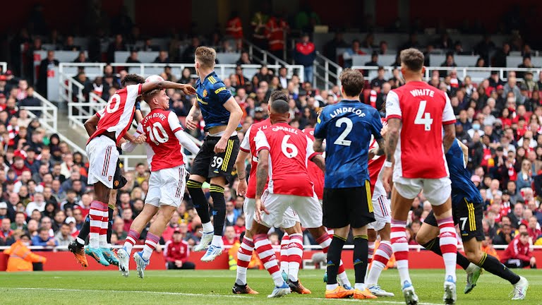Arsenal implemented a 4-2 pressing shape, in order to cover-shadow United's double pivot, and constraint United to have a lateral build-up in its own defensive third. Odegaard and Nketiah had to jump fast on central defenders...
