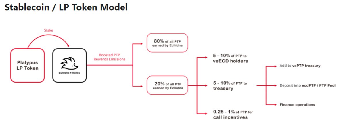 @Platypusdefi@vector_fi@echidna_finance - Users can stake their Platypus LP tokens on Echidna to boost their rewards emissions via our vePTP treasury. Their devs have also created a Zap feature, which combines stablecoin staking on Platypus and subsequent LP token staking on Echidna into a single convenient process.