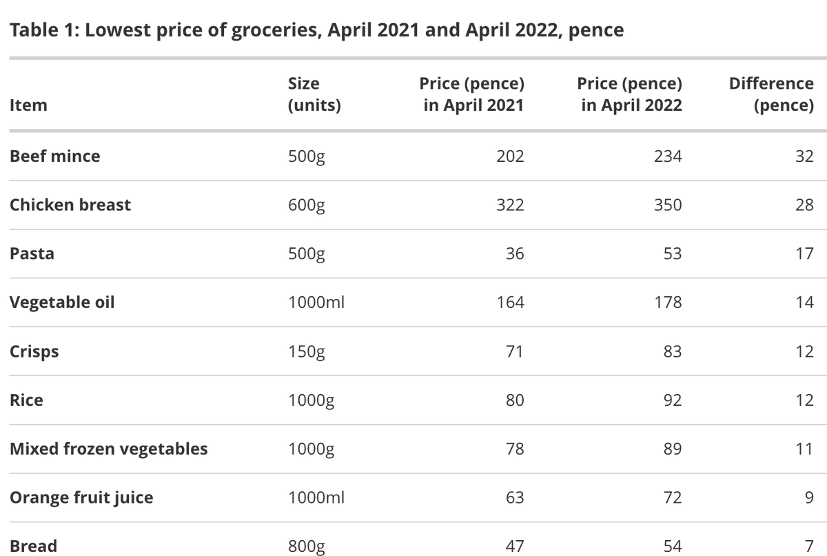 For those on low incomes, what also matters is the absolute price change in £ and p. So we included this table showing the price movements in pence and you can see that beef mince leads the table. 5/n
