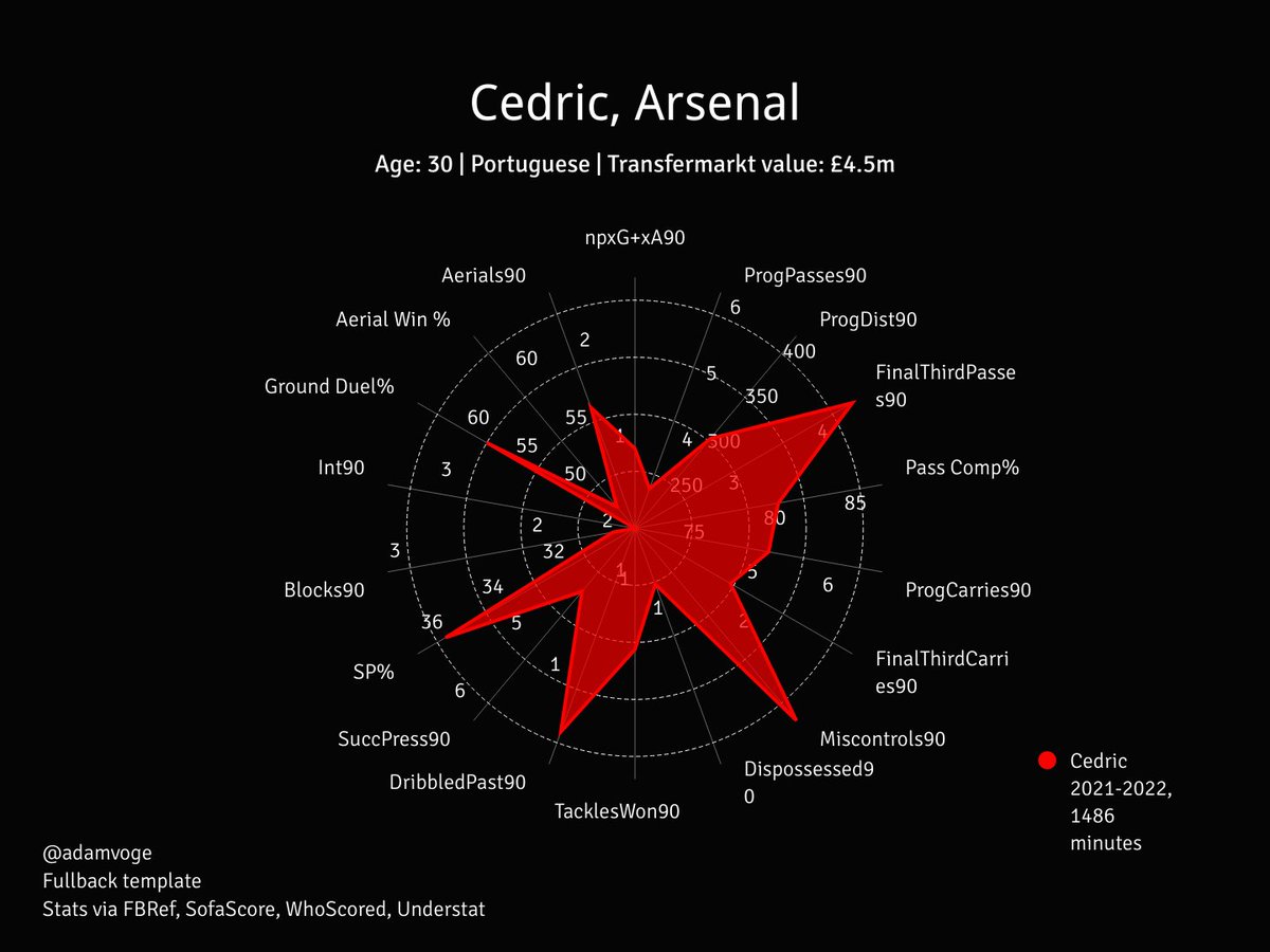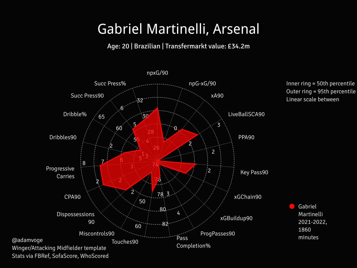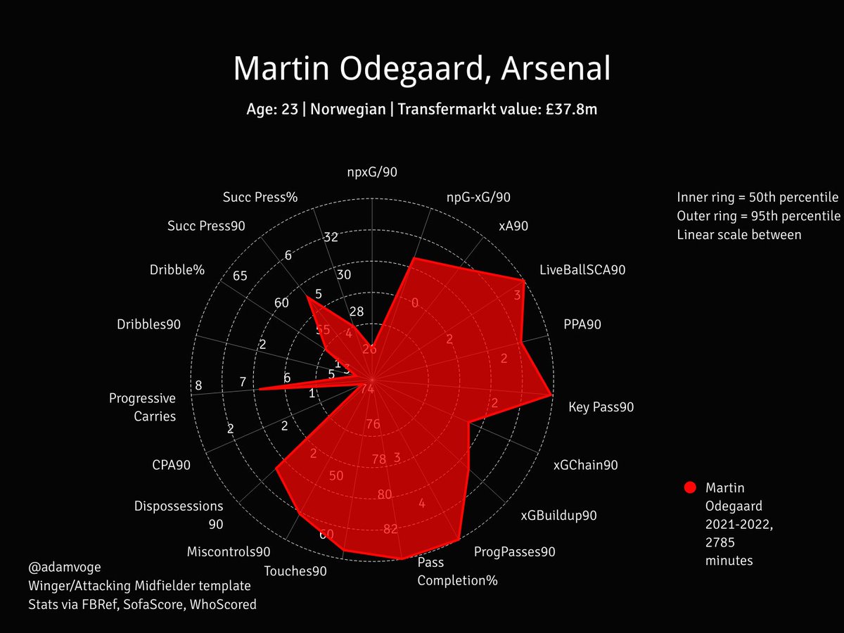 Can we get 30 starts of Thomas Partey, please? This radar looks like a strong 6, and that's including some struggles toward the end of 21/beginning of 22. Before his injury he was revelatory. Wrap him in cotton, Mikel.