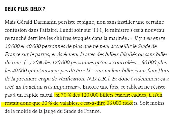 2) G. Darmanin soutient donc qu'il y aurait eu 80.000 détenteurs de bons billets et 40.000 fraudeurs. Ce qui ferait 120.000 personnes.