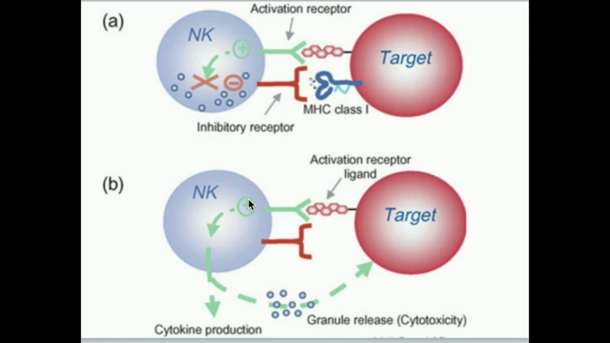 2/ NK cells work hand in hand with the T cells like the dynamic duo. While T cells look for those peptides being presented by the MHC-I, the NK cells look for the absence of MHC-I. Many infected or cancer cells will reduce or stop producing MHC-I.