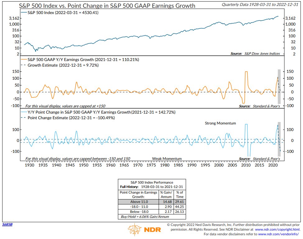 5. An earnings slowdown is inevitable. This indicator based on the y/y change in the EPS growth rate should be in the bearish zone by the end of Q2. The question is it a slowdown or major earnings recession (-20% y/y), which have only occurred around economic recessions? 5/5