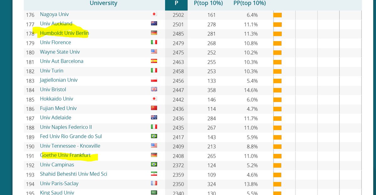 und erst danach taucht, nur knapp vor der nicht gerade bedeutenden Uni Frankfurt, die eigentliche Charité auf (Humboldt Universität zu Berlin).
