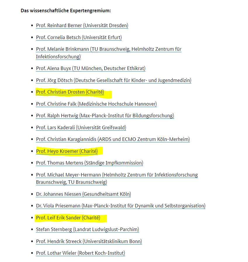 Dazu 2 weitere Experten aus diesem Hause, der tatsächlich in der deutschen Forschung einigermaßen bedeutsame Drosten nebst Leif Erik Sander, der die Corona-Krise als Karriere-Sprungbrett nutzen konnte und halt von der Charité ist.
