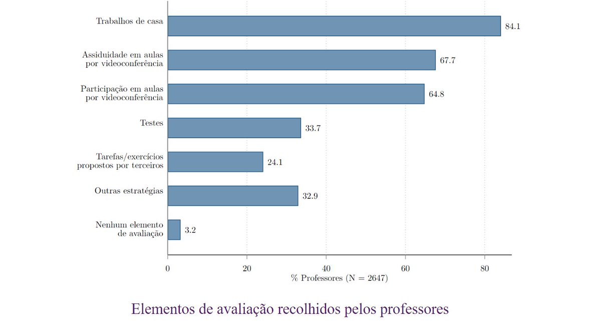 4.Depois alguns dados mostram que os professores mudaram os seus critérios de avaliação devido ao ensino a distância, nomeadamente na sua capacidade de recolher elementos de avaliação como testes escritos.