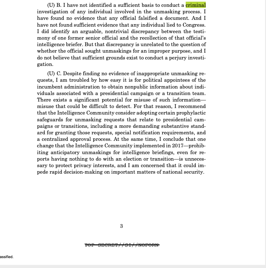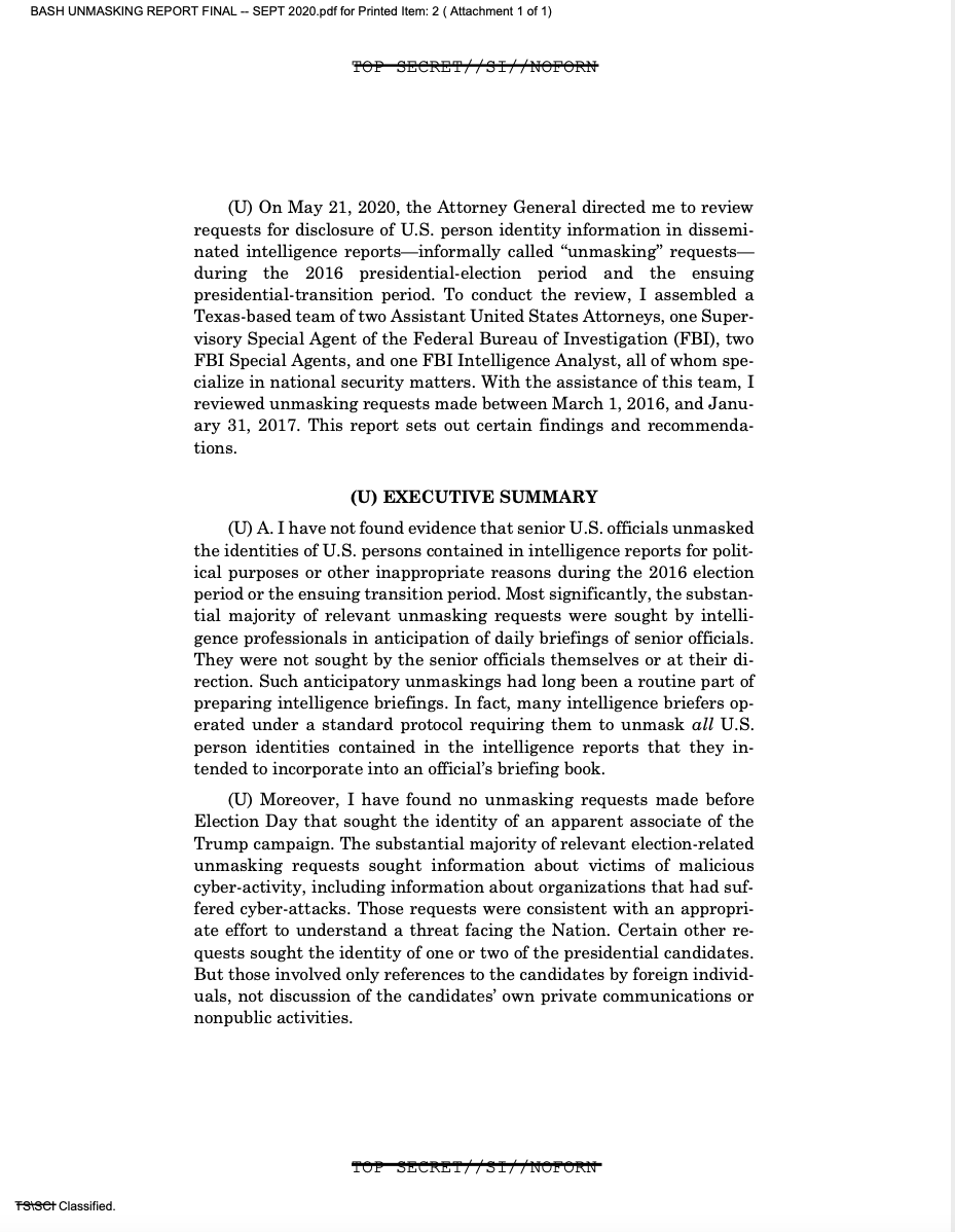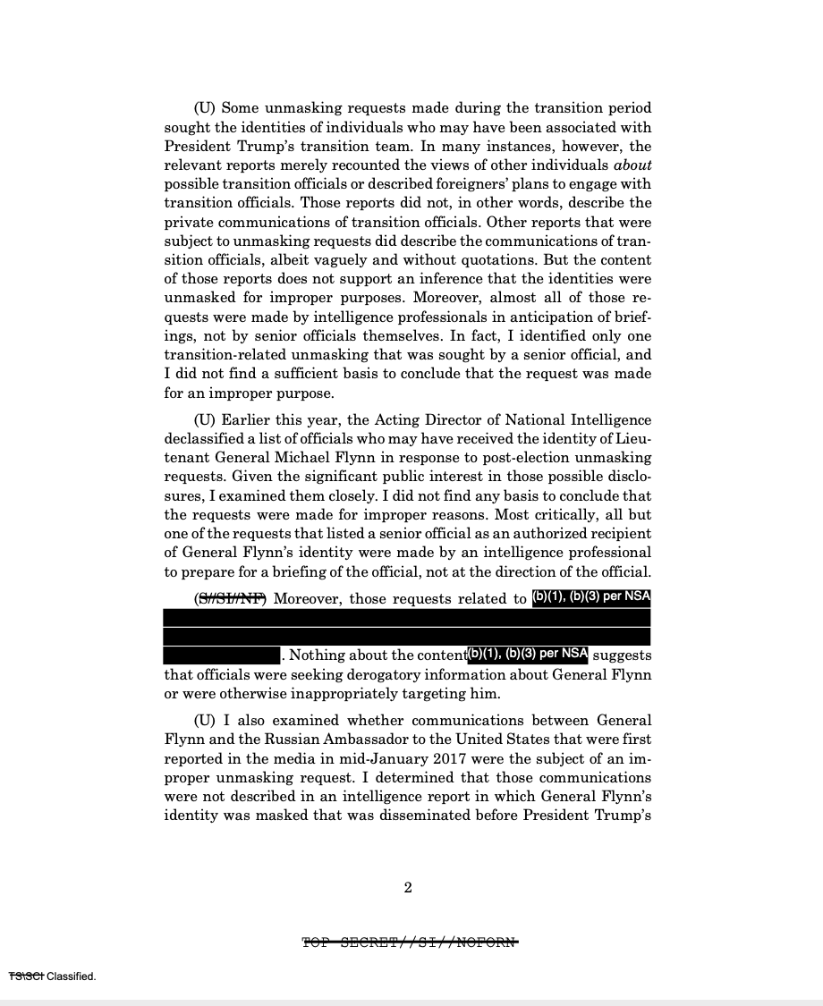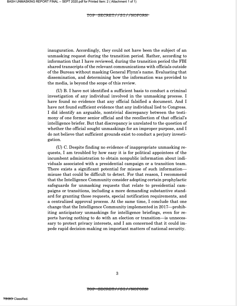 NEW: I just obtained via #FOIA the secret 2020 DOJ report based on an investigation ordered up by Bill Barr to determine whether Obama officials improperly unmasked Michael Flynn & others prior to & after the 2016 election