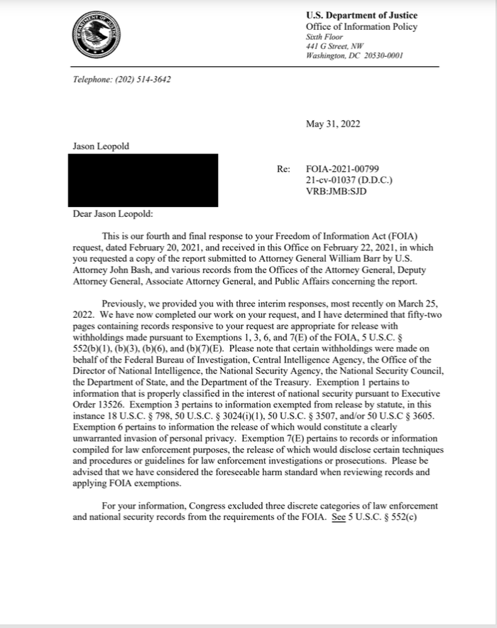 It took me more than a year to pry this report out of DOJ. The reason this report -- known as the Bash Report -- took so long for DOJ to process is because it also had to be reviewed by CIA, NSA, ODNI and FBI.