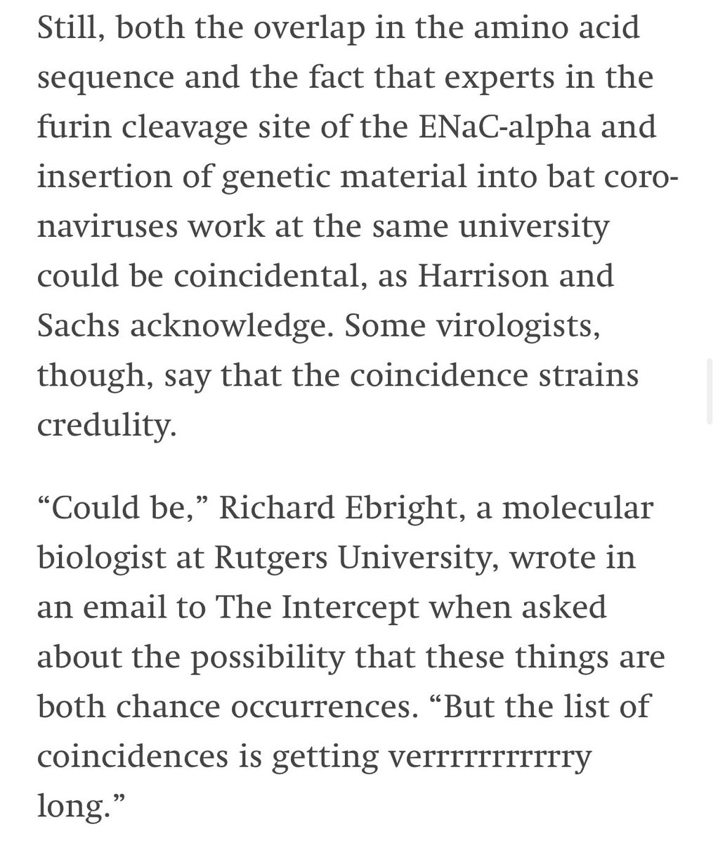 I’ll add here he never mentions his own conflicts, starting with the fact that he alone advised Sachs on this particular theory & basically ghost wrote the PNAS piece or that he came up with the idea in his ceaseless quest to prove a lab origin without a shred of actual evidence.