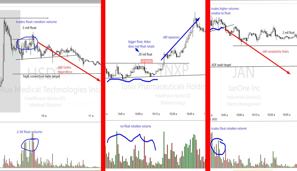 High float rotation volumes as high chance of short squeeze is often overused term, because it is all based on assumption that mechanics work only in one sided direction. Which is incorrect. Market makers can also float rotate somewhat ticker that they are distributing (trap).