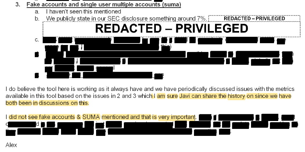 I believe Olivan has been deposed several times, something Sandberg avoided, so it will be interesting if this further exposes FB. His "Growth Team" included Alex Schultz, who always seemed to be a major risk area for FB, including on the SUMA and fake accounts management. /5