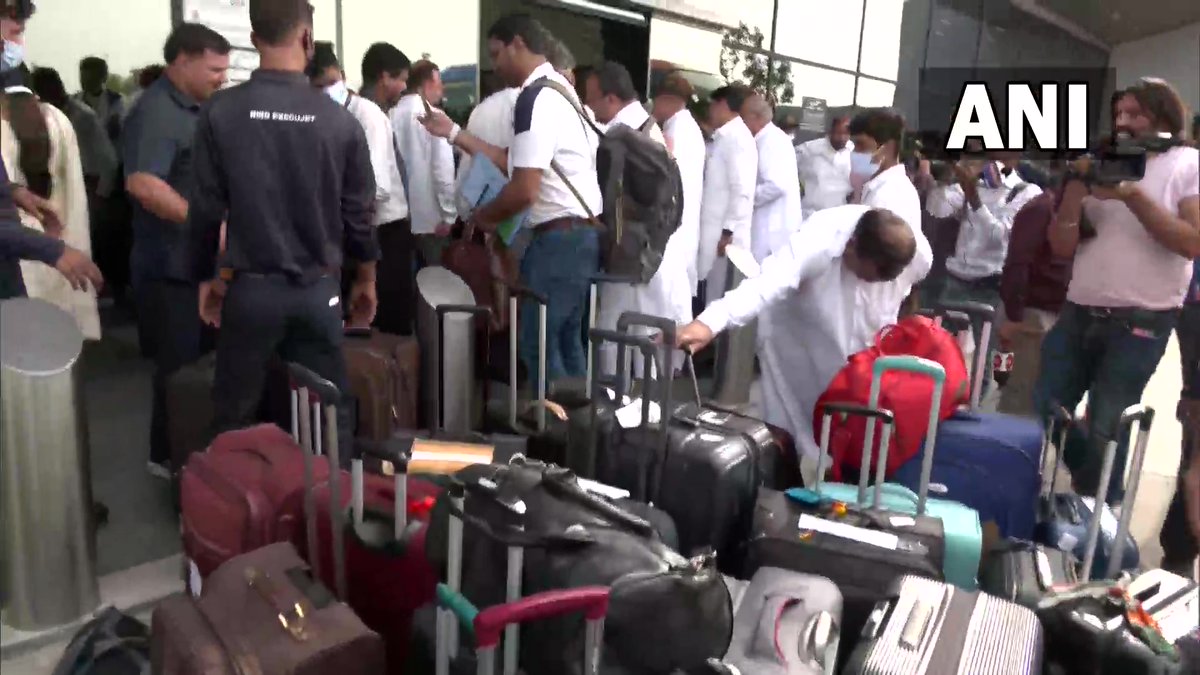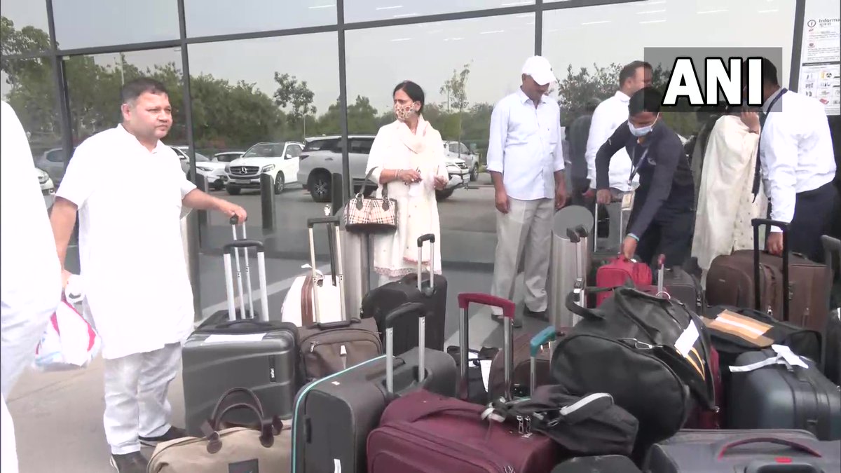 Haryana Congress MLAs arrive at Delhi airport.