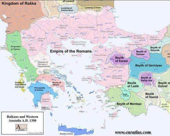1)H Eλληνικη Ανατολη το 1300. Ακομα και ο πιο καλοπιστος παρατηρητης δεν θα μπορουσε παρα να ηταν απελπισμενος. Στο θρονο της Αυτοκρατοριας βρισκοταν ο ανεκδιηγητος Ανδρονικος Β' Παλαιολογος (1282-1328), ο ανθρωπος που ξοδευε εκει που δεν επρεπε,