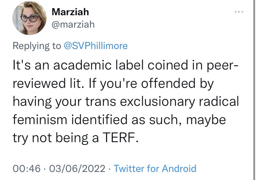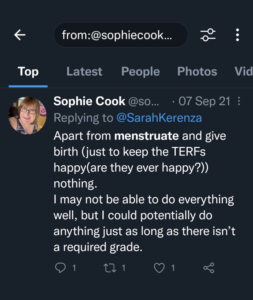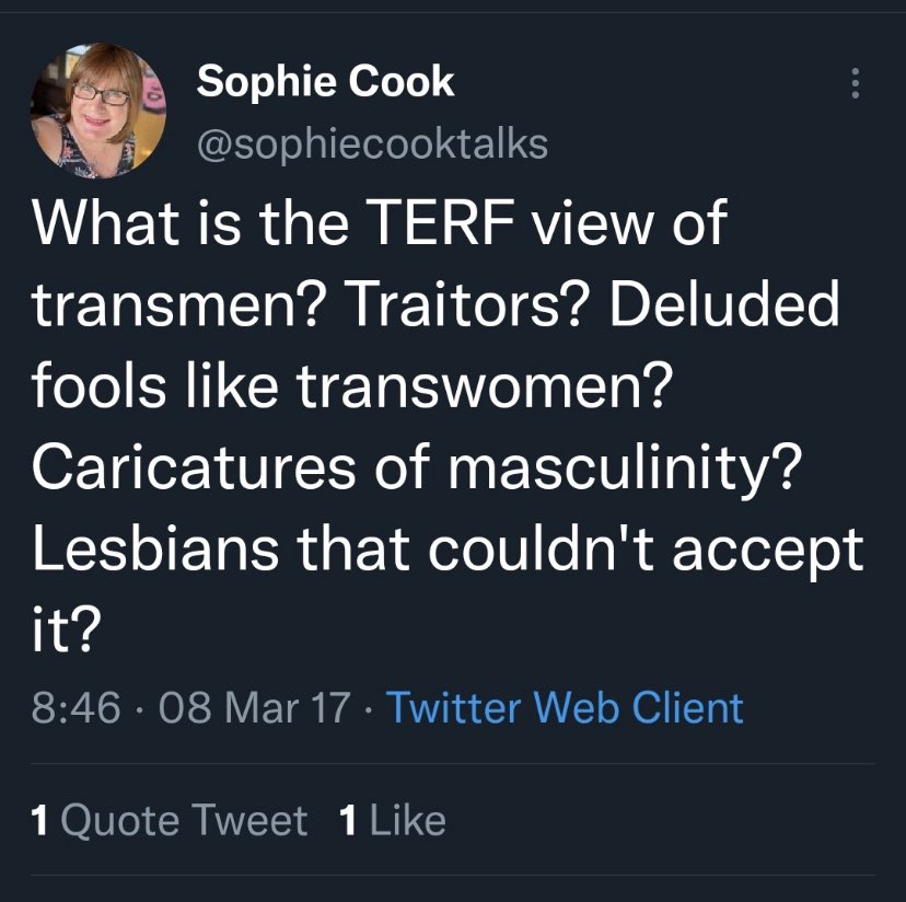 What? It’s not a slur unless I call you it and then it’s a slur? What does this even mean? So how does Sophie decided who are the ‘te*fs’ and what will Sophie do with them?