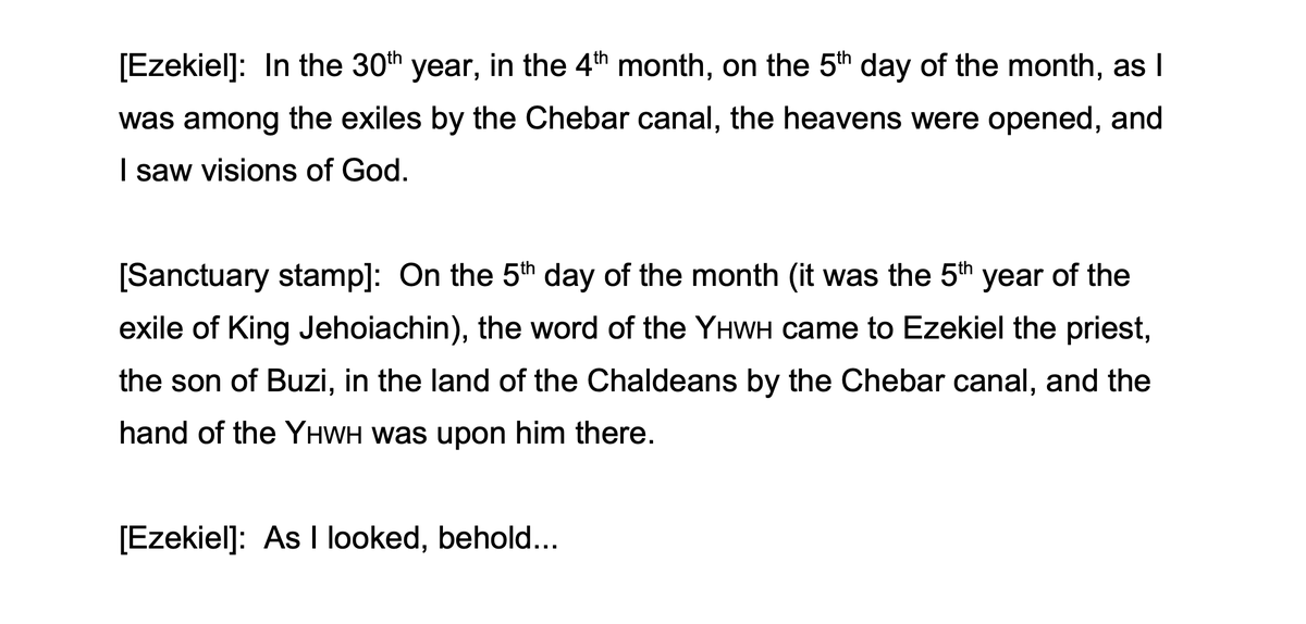 Consider, for instance, the introduction to Ezekiel’s memoirs, where a sanctuary date-stamp seems to have been added (in the third person) between Ezekiel’s date formula and his first vision: