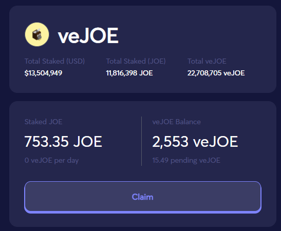 Users looking to get in early into new projects could also stake $JOE for rJOE. Users can submit rJOE to enter new launches, which unlocks the ability for the user to deposit AVAX into launch pools.