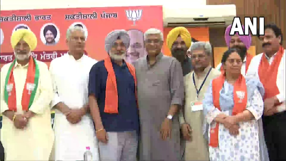 Chandigarh | Congress leaders Raj K Verka, Gurpreet S Kangar, Balbir Sidhu, Kewal S Dhillon, Sunder Sham Arora, Kamaljeet S Dhillon, & SAD leaders Bibi Mohinder Kaur Josh & Sarup Chand Singla, along with Mohali mayor Amarjeet S Sidhu join BJP at party office.