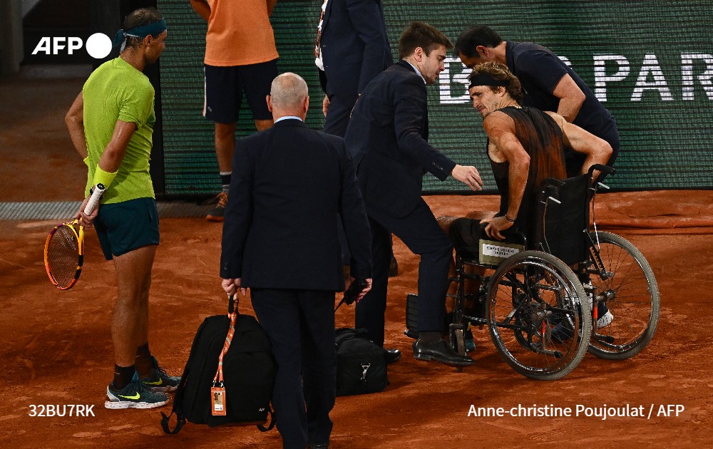 #UPDATE After leaving the court in a wheelchair, Zverev returned minutes later on crutches to formally concede the match to Nadal, who advances to a 14th French Open final