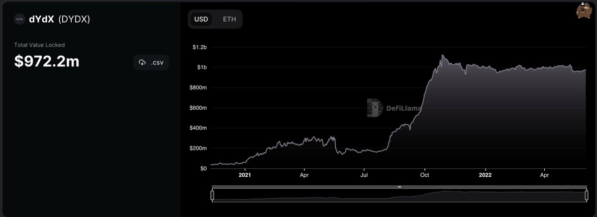 If we look into the TVL on @dYdX we can see that it has remained really consistant since Nov 2021, something most #DeFi dApps cannot say.