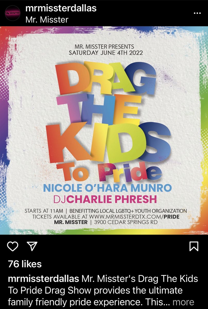 @alexstein99 The drag event for children at a gay bar in Dallas, Texas was called "Drag the Kids to Pride." It was held at the Mr. Misster gay bar & club. Children & transvestites danced in front of an electronic sign that read, "It's not gonna lick itself."