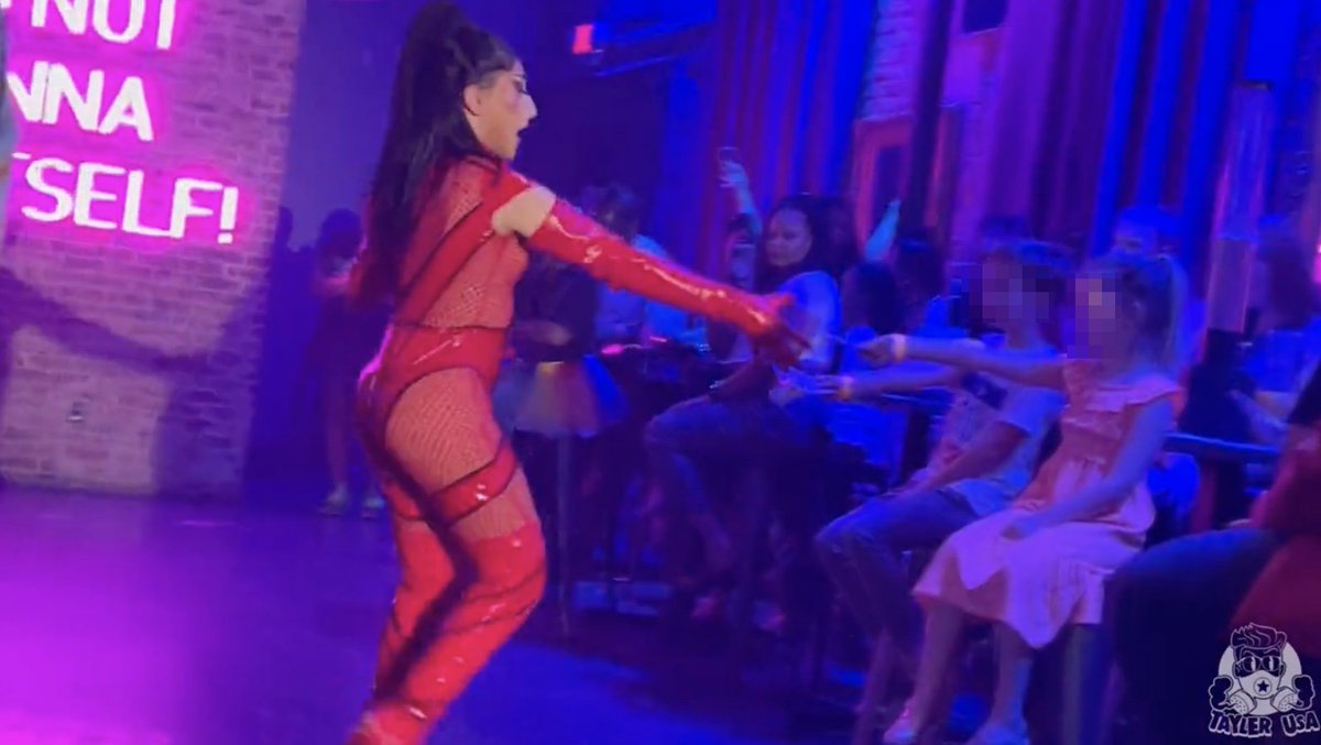 Footage from inside the gay bar in Dallas, Texas (Mr. Misster) that hosted the drag show for children as part of #PrideMonth. Video by @TaylerUSA.