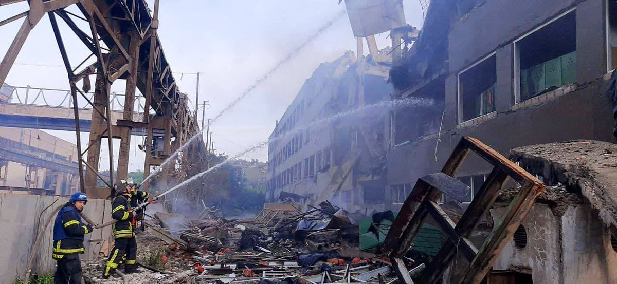 🛑🛑🛑Video from social media showing 1 of the #putin regime terrorists strikes in #Kyiv this morning on the Darnyts’kyi train car repair plant , where train cars that are used to transport grain were repaired #Ukraine#russia
