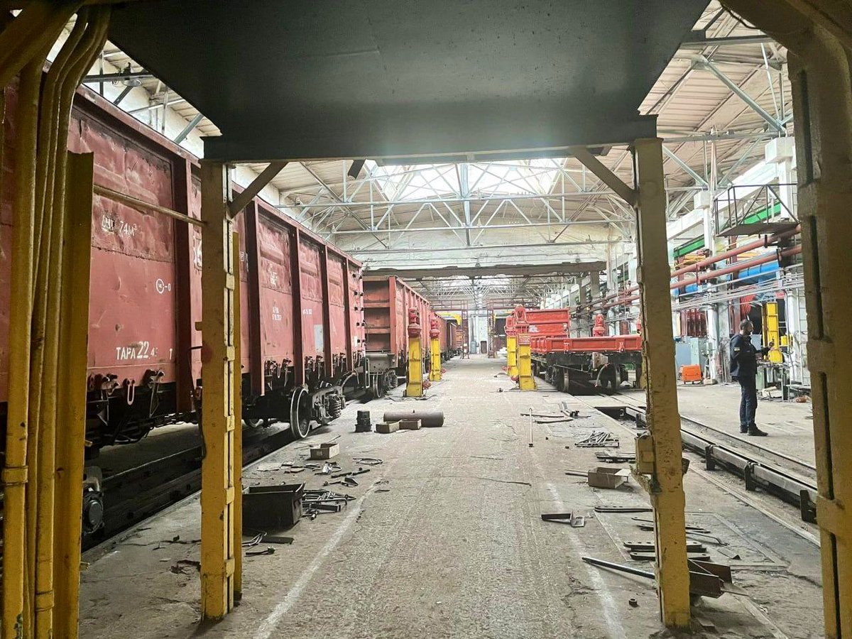 🛑🛑🛑 #Ukraine railways head says that this morning the #putin regime terrorists had struck the Darnyts’kyi train car repair plant , wounding 1 civilian #russia