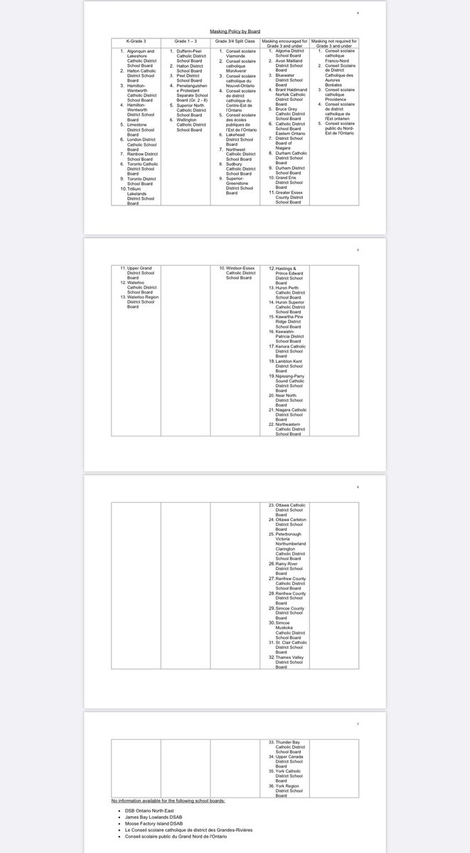 Please Note: Many boards already mandated masking from kindergarten to grade 12…