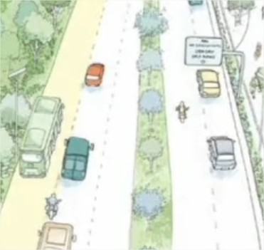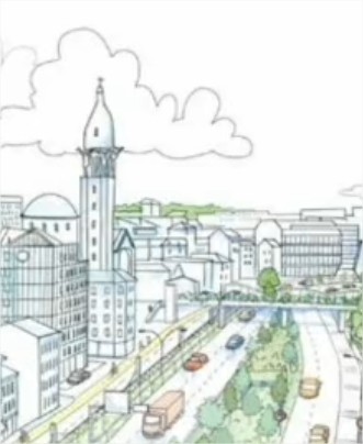 La bande végétale au milieu est possible, sur 3-400 mètres seulement, en comblant le tunnel (et en poussant un peu les voies de circulation 😁).