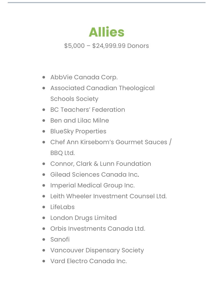 4/7 And here’s a screenshot from the “Allies” ($5,000–$24,999.99 Donors) section. Appropriately named category for the @bctf to be included in, don’t you think? #bced#bcpolibccdcfoundation.org/our-donors/