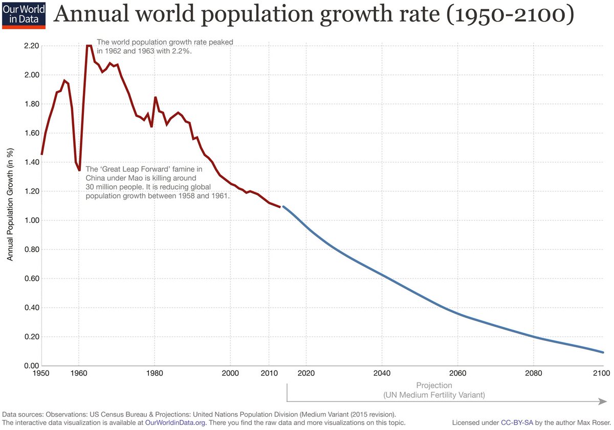 - En croissance : car l'humanité grandit en taille et en niveau d'éducation
