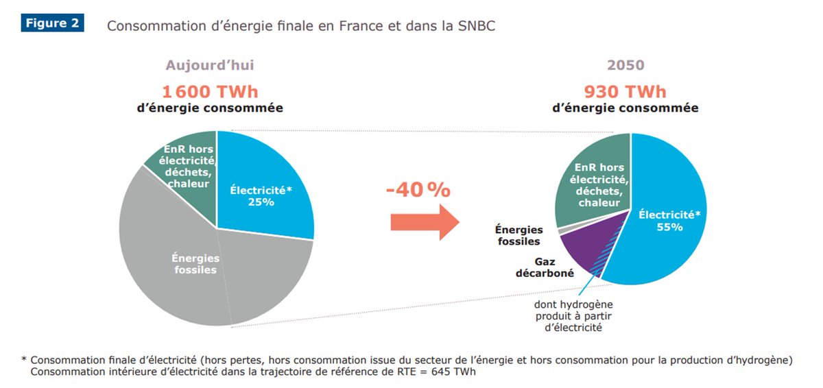 2 - électrification de tout ce qui est électrifiable : chauffage, transport, cuisson, etc.