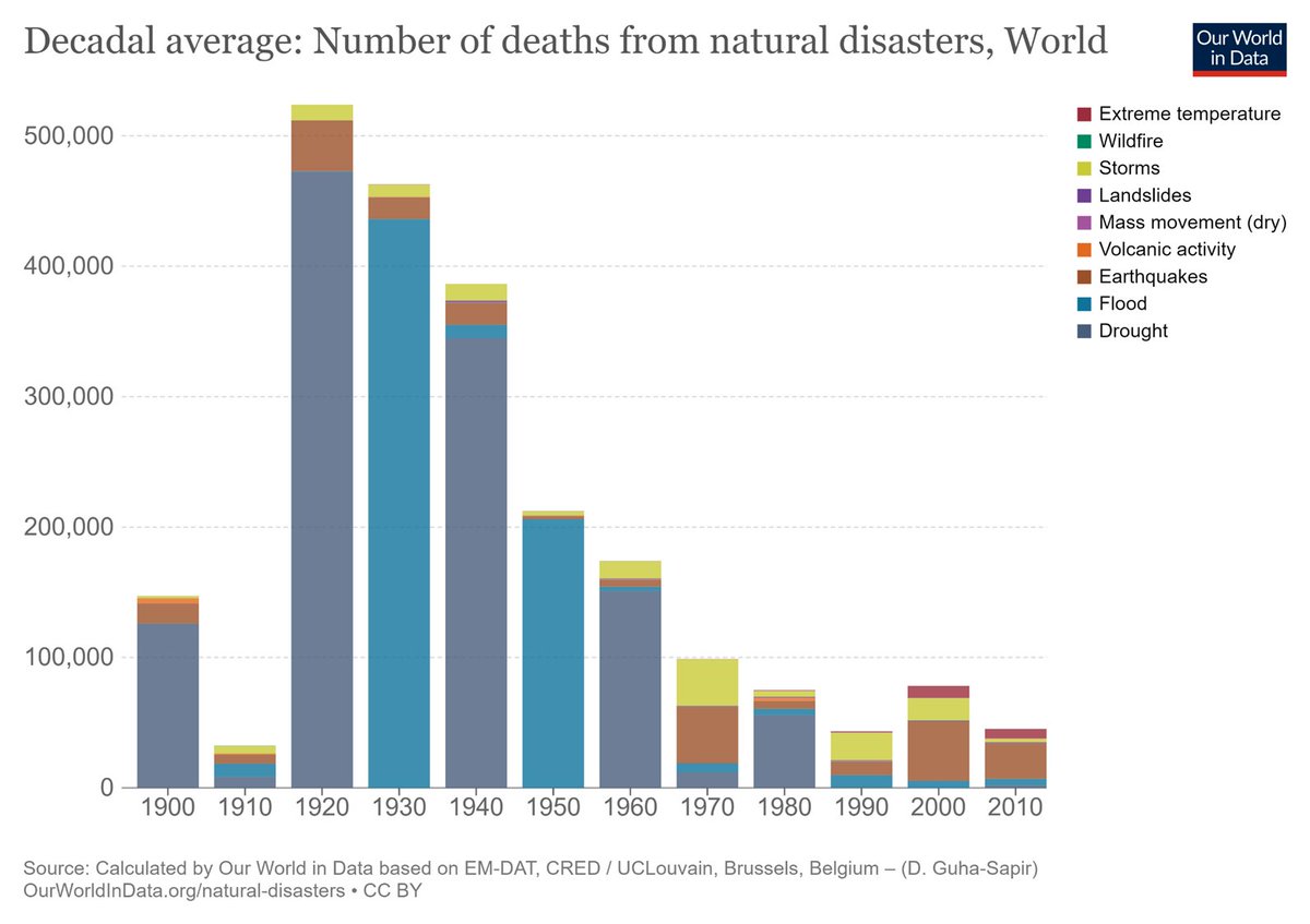 Si les catastrophes climatiques se sont probablement intensifiées, le développement économique et technologique fait que nous y somme bien mieux préparé #Resilience