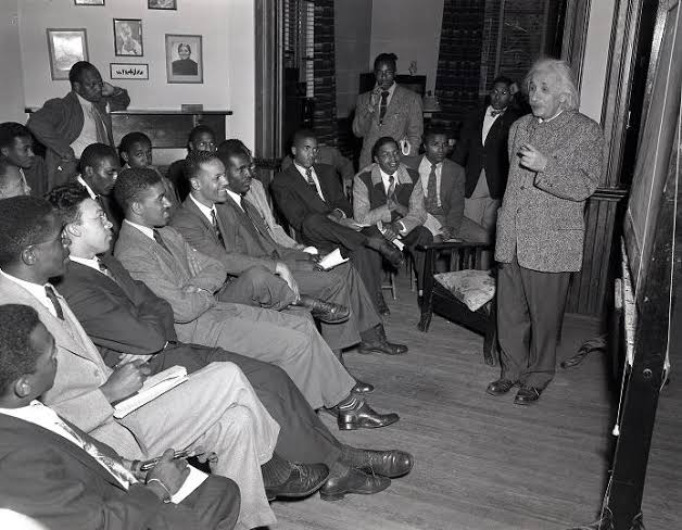 Desafiando las convenciones raciales de la época, Albert Einstein imparte una clase ante un grupo de estudiantes afroamericanos en la Universidad de Lincoln.