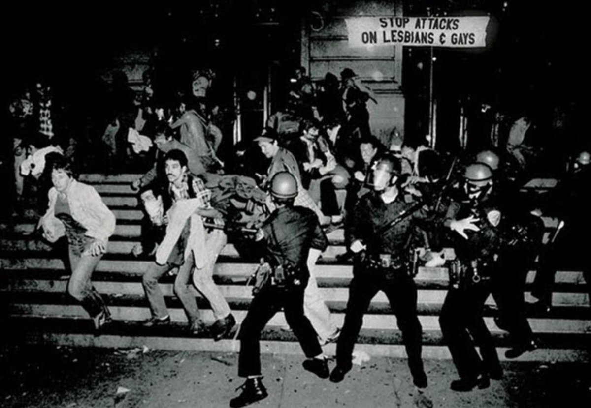 La policía neoyorkina carga contra un grupo de manifestantes durante los disturbios de Stonewall, iniciados cuando un grupo de clientes del local gay se enfrentaron violentamente a los agentes que trataban de arrestarles