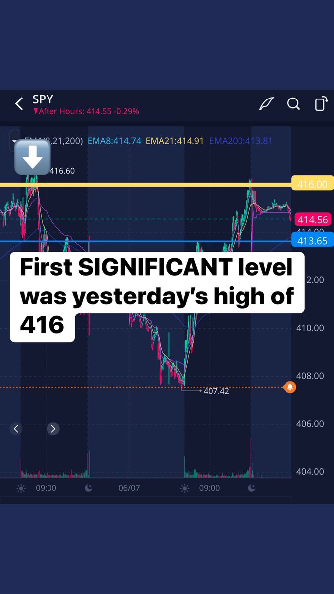 Next I look for my PROFIT TARGET π― which is the first SIGNIFICANT level above/ lower my levels for todayβs example it was 416.00