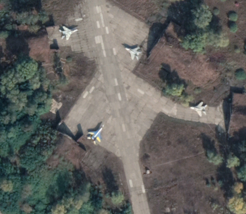 I believe I located this specific airframe, seen here in its bright colors at Vasylkiv Air Base in 2019, stored with other MiG-29s from the 40th Tactical Aviation Brigade.