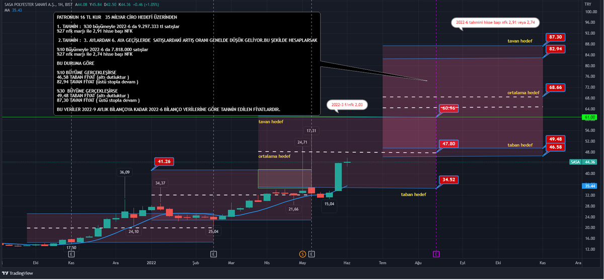 #SASA İbrahim Erdemoğlunun açıkladığı 2022 yılı yılsonu hedef ciro tahminine göre bizde grafik üzerinden