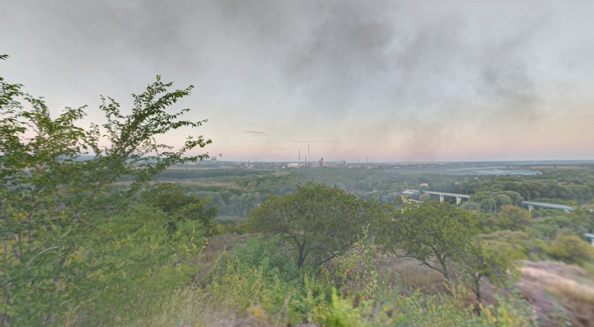 17/ Take a look at these views of Sievierodonetsk from Lysychansk and vice-versa. Where would you rather be - on the exposed flood plain, having to attack uphill through steep wooded gullies, or dug in on the hill 130 m (450 ft) above, firing down on enemies in the open below?