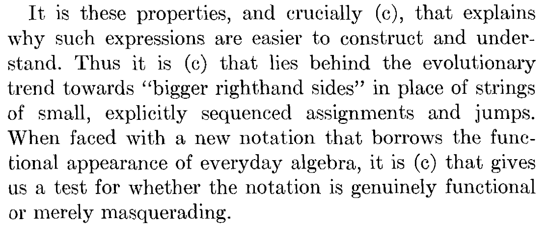 I'm not the first person to explain functional programming in this way. This way of explaining things dates back at least to Landin's "The Next 700 Programming Languages": cs.cmu.edu/~crary/819-f09… (16/16)