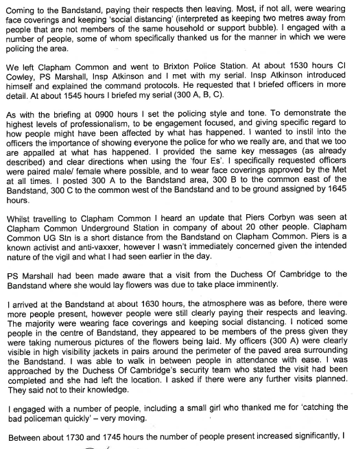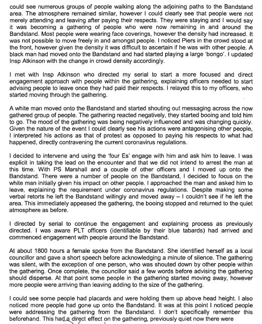 The police's side of events is set out at length by an Inspector and four PCs involved in policing the event on March 13, 2021.