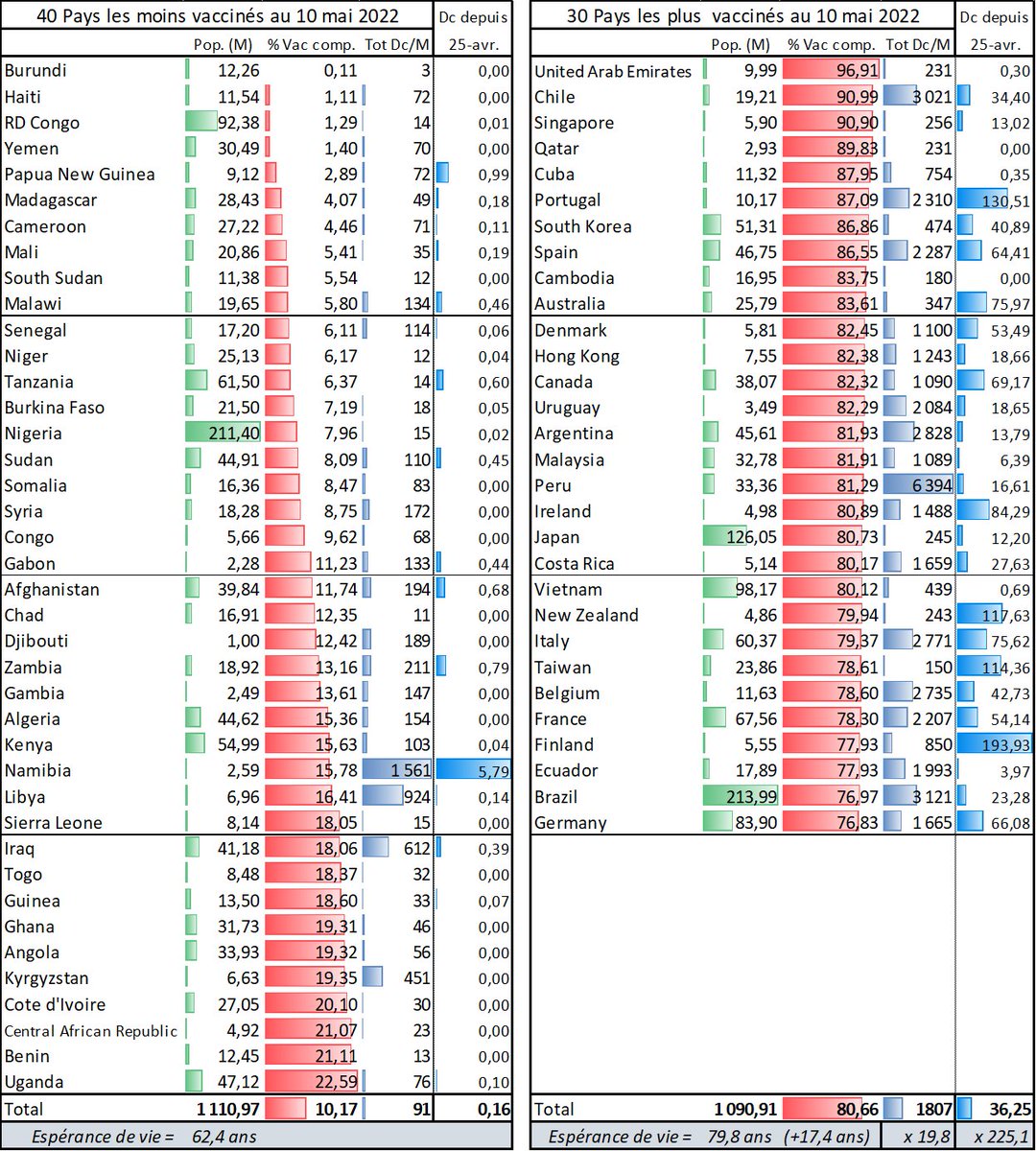 1. Terrible inégalité des pays les plus vaccinés devant la mortalité Covid.