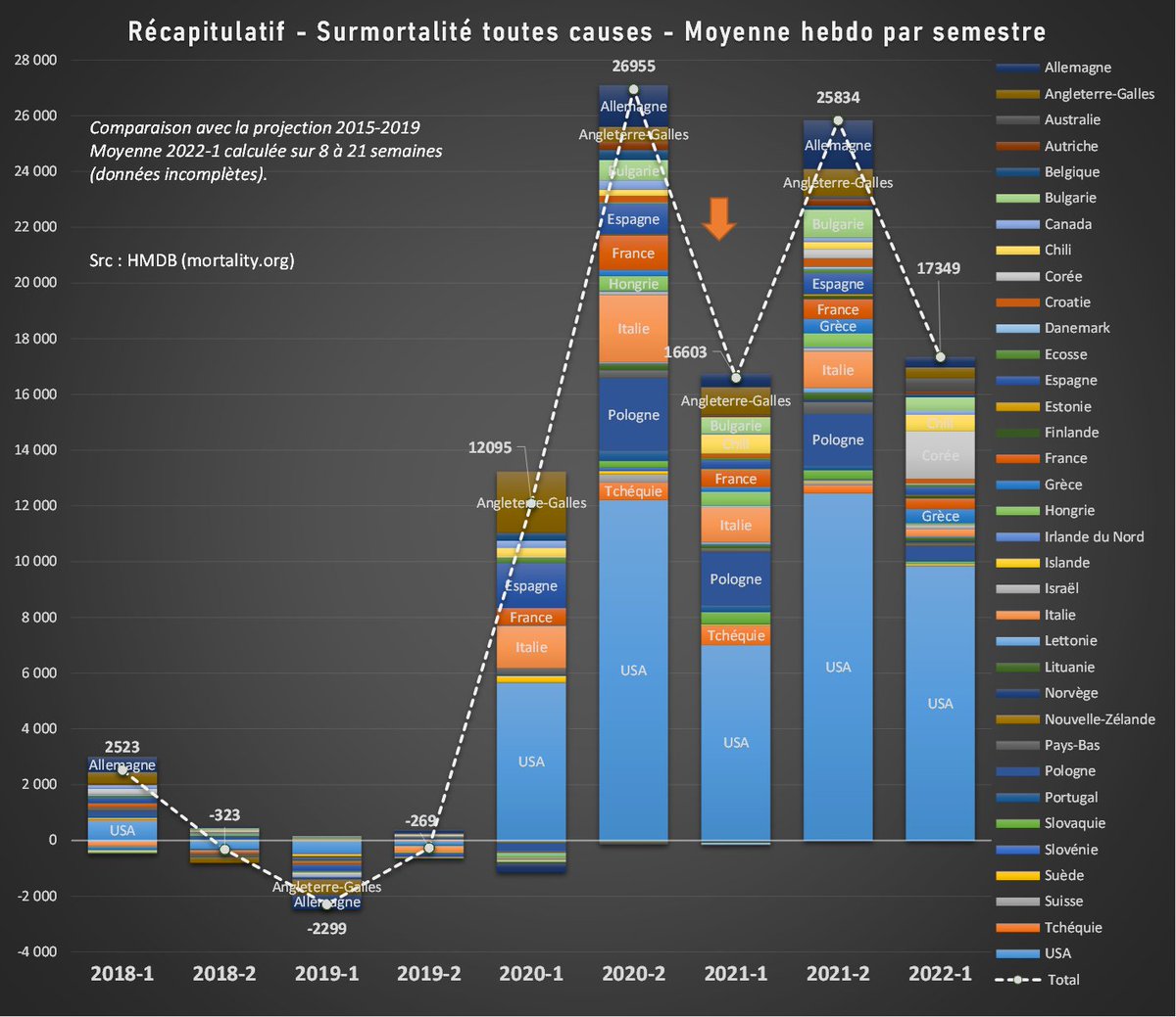 6/6 Et si vous préférez la surmortalité toutes causes (bcp - sujette à caution), on n'en dispose que dans les pays la plupart très vaccinés, via @HMDatabase.