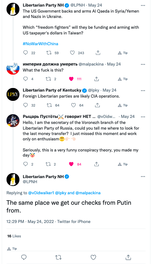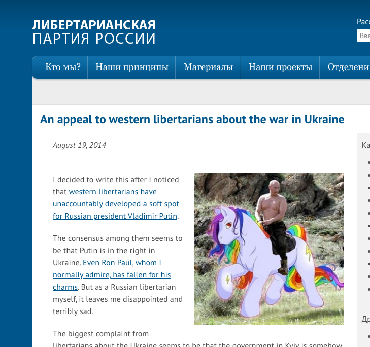 On a related note, many of the "advisory board" and "heroes" of the new LP leadership have a long history of repeating Kremlin propaganda instead of listening to local libertarians who know better.