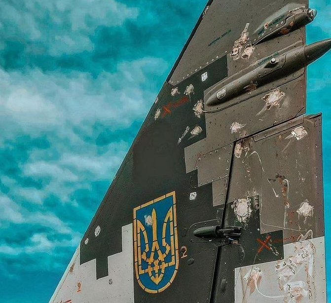 14. Interesante foto donde se ve un MiG-29 ucraniano que en algún momento fue acribillado por la metralla de un misil antiaéreo. Un poquito de Compaktuna y a correr, como decimos por aquí.