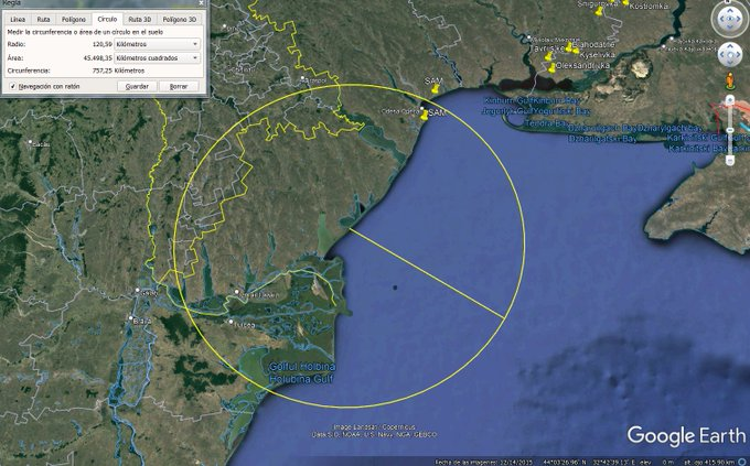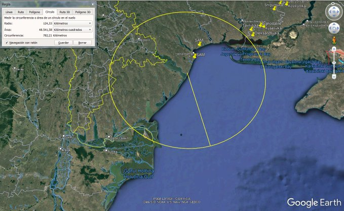 3. Vídeo de un Su-34 ruso lanzando dos bombas planeadoras a gran altitud. He localizado el lugar de lanzamiento en el óblast de Jérson, sobre la ciudad de Kalanchak, a 60 km del Dniéper.